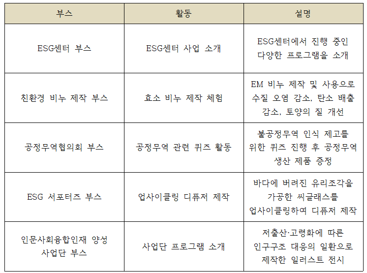 We conducted a campaign to raise awareness of the sustainability of participants through experiential activities such as environment, society, and economy.