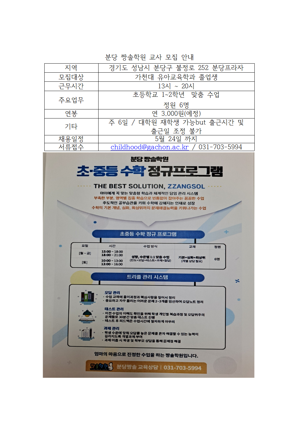 fnctId=bbs,fnctNo=1009 글번호 74701 분당 짱솔학원 교사 모집 안내 수정일 2022.05.11 작성자 이택민 조회수 713 등록일 2022.05.11 첨부파일 분당 짱솔학원 교사 공고.pdf 미리보기