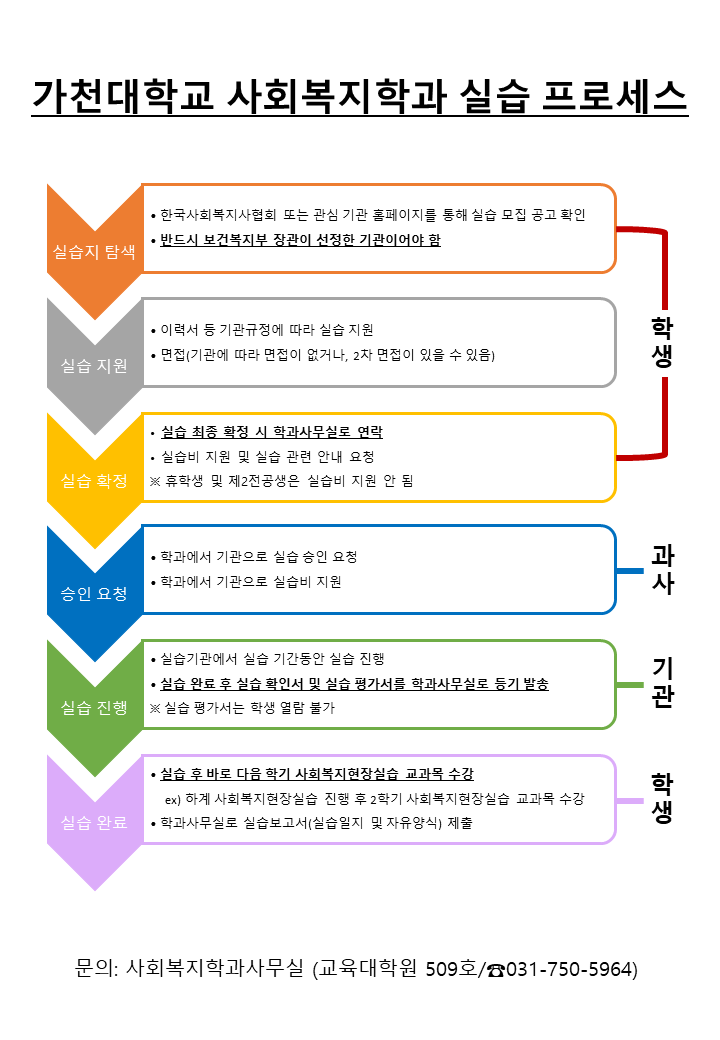 자격증 발급에 불이익이 없도록 사회복지현장실습 안내 내용을 숙지바랍니다.