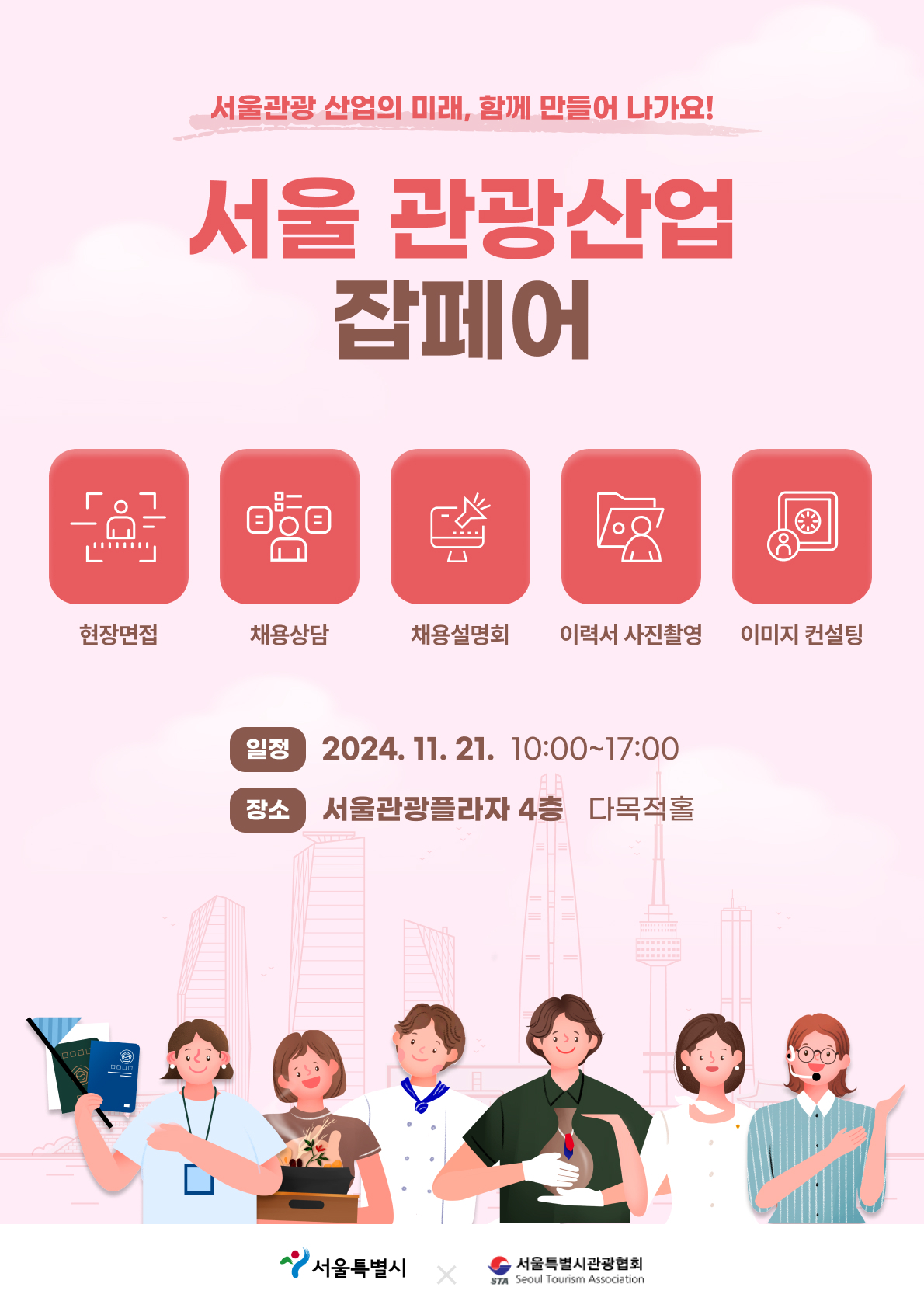 [서울 관광산업 잡페어]는 서울특별시관광협회가 주관하고 취업사이트 사람인이 운영하는 오프라인 채용박람회 행사로서,